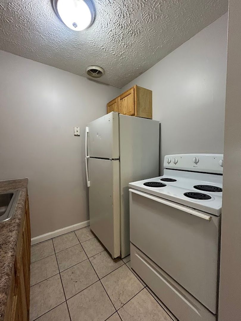 The kitchen comes equipped with a refrigerator and stove/oven, and the building offers on-site laundry and convenient off-street parking. Pet friendly.